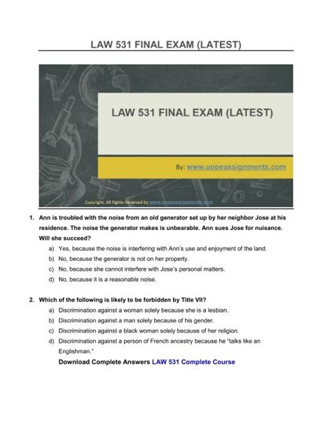 Download Law 531 Final Exam With Answers Paper Kindle Editon